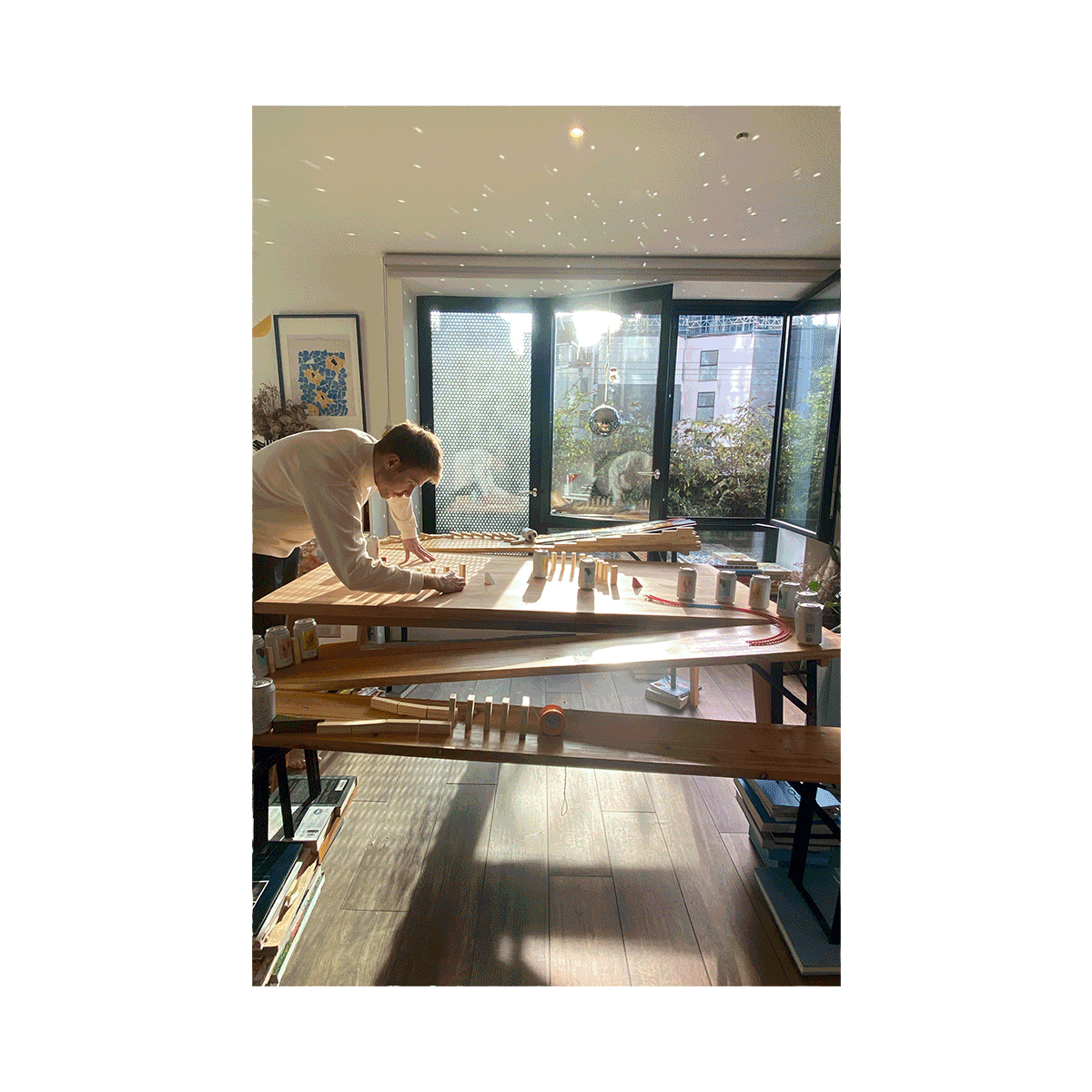 I currently split my creative brain between working at Anyways Agency (with big brands), building Rube Goldberg Machines and workshops (predominantly with students and studios), and making mosaics under the name ‘Soller’ (for anyone who is interested).